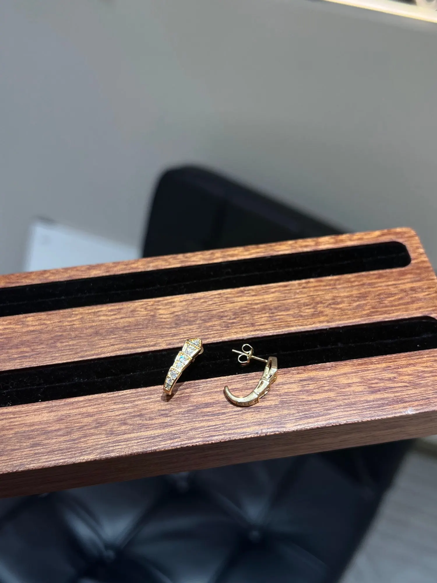 Clean gently with warm, soapy water and a soft brush. Store your earrings in the provided protective pouch to maintain their finish and prevent scratches. Avoid ultrasonic cleaners, harsh chemicals, and abrasive polishes to protect the plating.