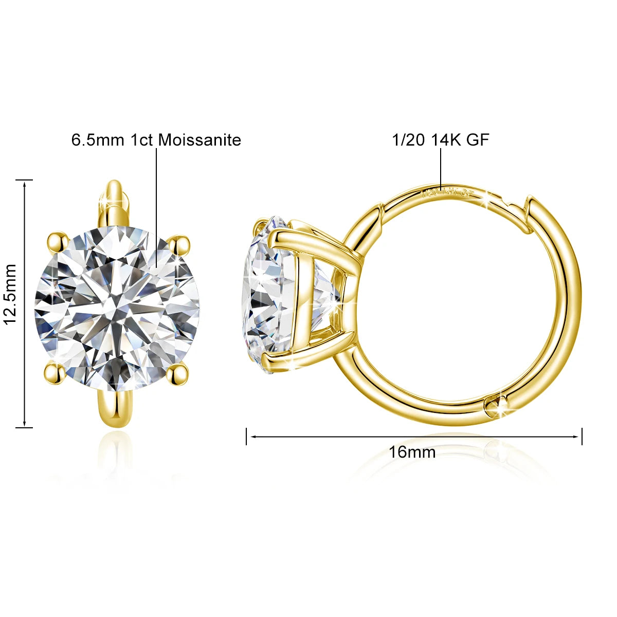 14K Gold Filled Moissanite Solitaire Huggie Hoops wrap your ear in warm, lustrous gold and sparkling brilliance. Close-fitting comfort meets timeless elegance. Built to last, designed to dazzle.